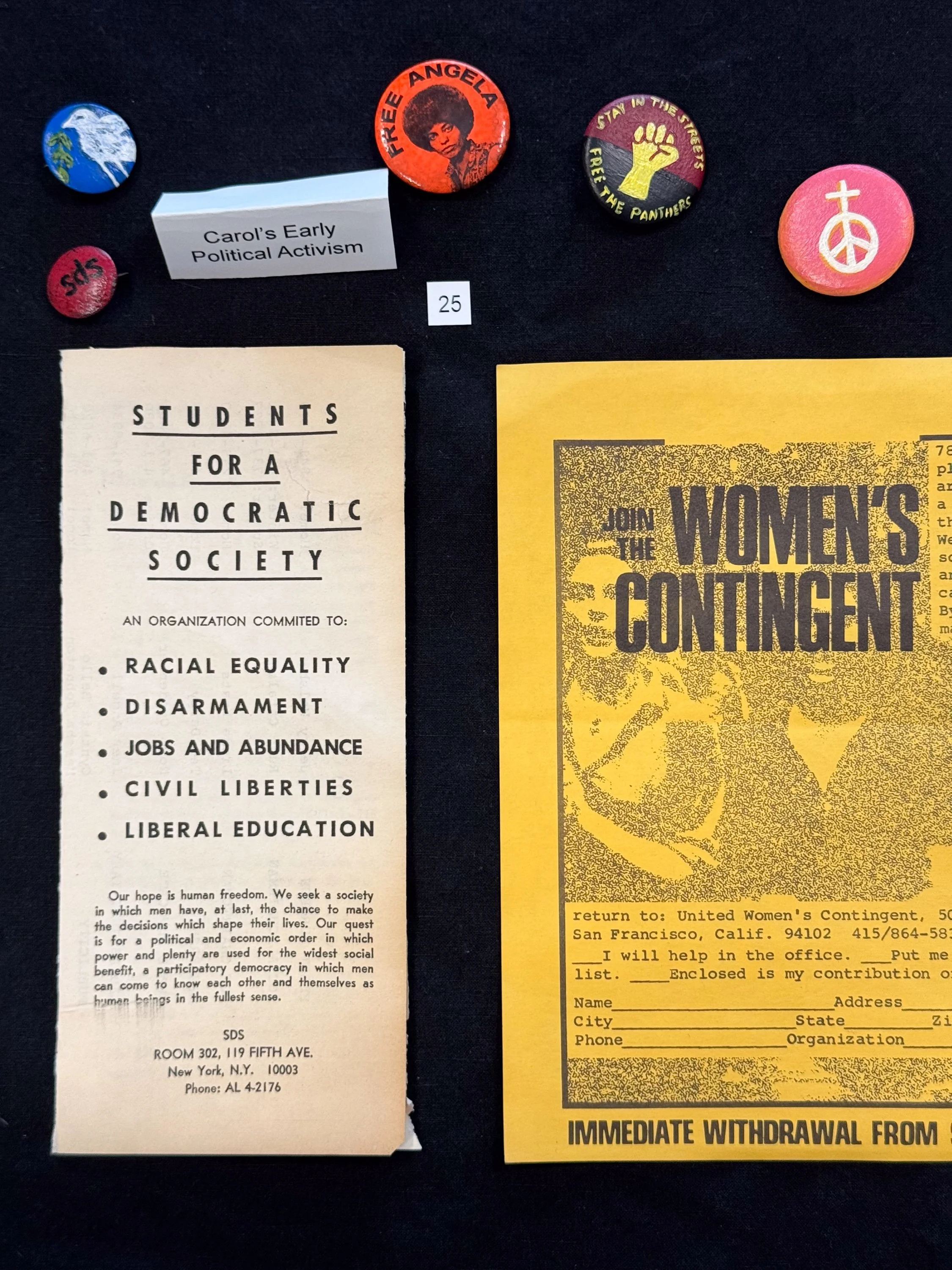 “While a student at the University of Michigan, Ann Arbor, in the early sixties, Carol […] was an active member of the VOICE Political Party, the chapter of Students for a Democratic Society (SDS). Founded in 1960, SDS was a student activist movement that organized students at college campuses for an entire decade. They promoted education and direct action in response to the issues of civil rights, economic injustices, the war in Vietnam and student's rights” (UMB Archives Collection Overview).